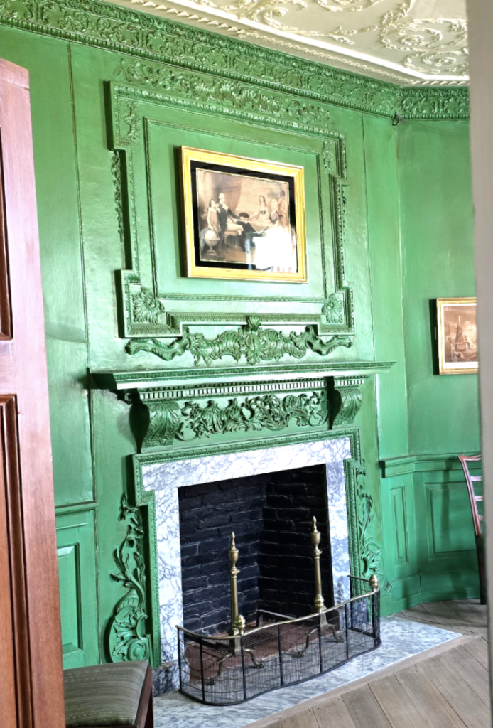 Look at this paint. It’s verdigris-green, a product of copper corrosion. Not only was it expensive to procure and install (extremely), but it was costly to maintain as well. Additionally, throughout the site were hints of the ease of access they had to luxuries such as sugar and chocolate. Washington was a big hot chocolate drinker.