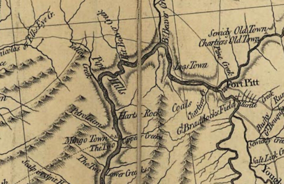 Gibson has often been remembered as the ‘last resident’ of Logstown, though by then the site was a ghost of its former self. By then the site was far from the bustling trading post it had been a generation earlier, its houses mostly abandoned and its people dispersed. Just downriver, at the mouth of Beaver Creek, stood Loganstown, the settlement of the Mingo leader James Logan. One surviving account places George Girty present when Logan, angered by reports that Gibson had supplied alcohol to a Native man who drowned in the river, was waiting for the trader outside his home. Gibson, fearing for his safety, withdrew to Fort Pitt. To ease the tension, Guyasuta and White Eyes visited Logan to diffuse the situation.[4]