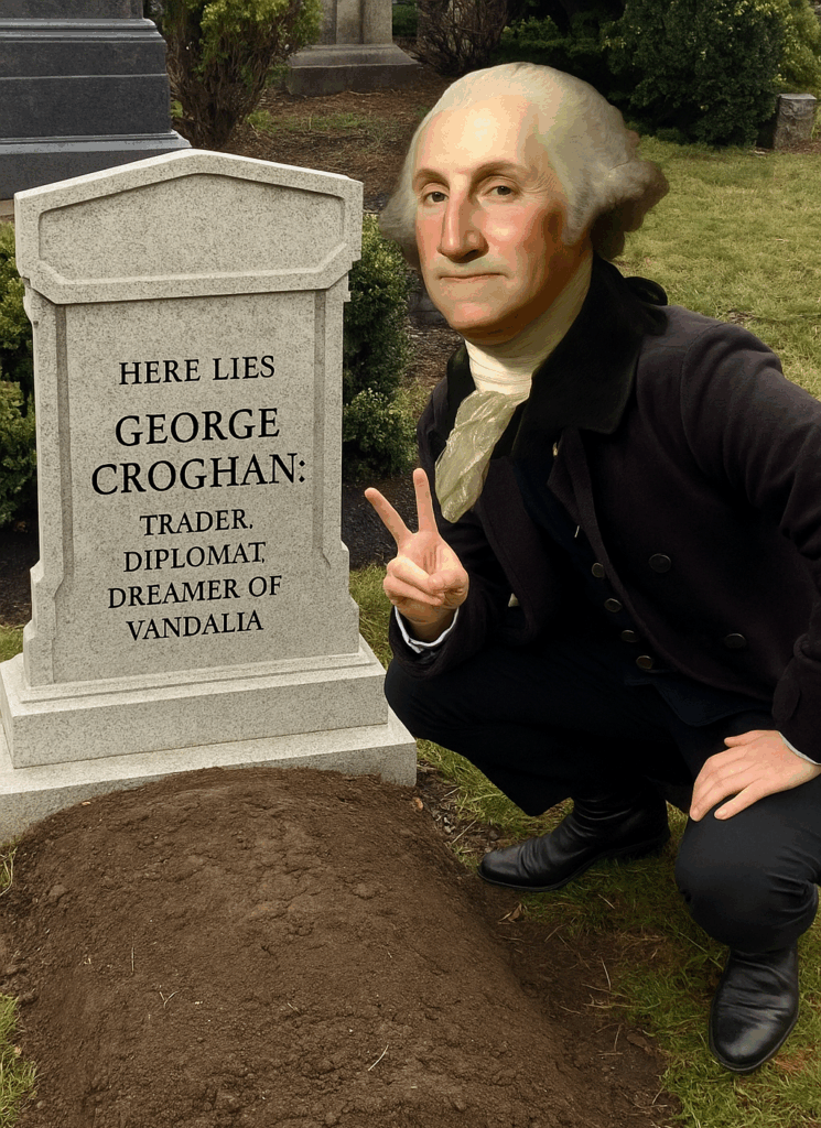 Croghan never recovered from the collapse of Vandalia. The colony that was supposed to crown his career instead ruined it, leaving him buried in debt and stripped of influence. Pennsylvania officials, weary of his endless lawsuits and suspect dealings, barred him from living west of the Alleghenies — exiled from the very frontier he had built his life upon. It was the metaphorical black eye to match the one Teedyuscung had given him years before at Fort Pitt: a bruised reputation that never healed, the mark of a man who schemed too broadly and fell too hard.
